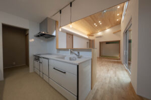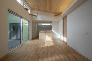 外からの視線を気にせず、家の内側に向かって自然と家族が集まる空間になっています。
