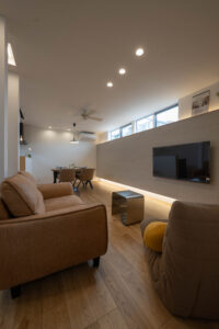 この家の主役は、2階リビング。光をたっぷり取り込む、明るさと開放感。