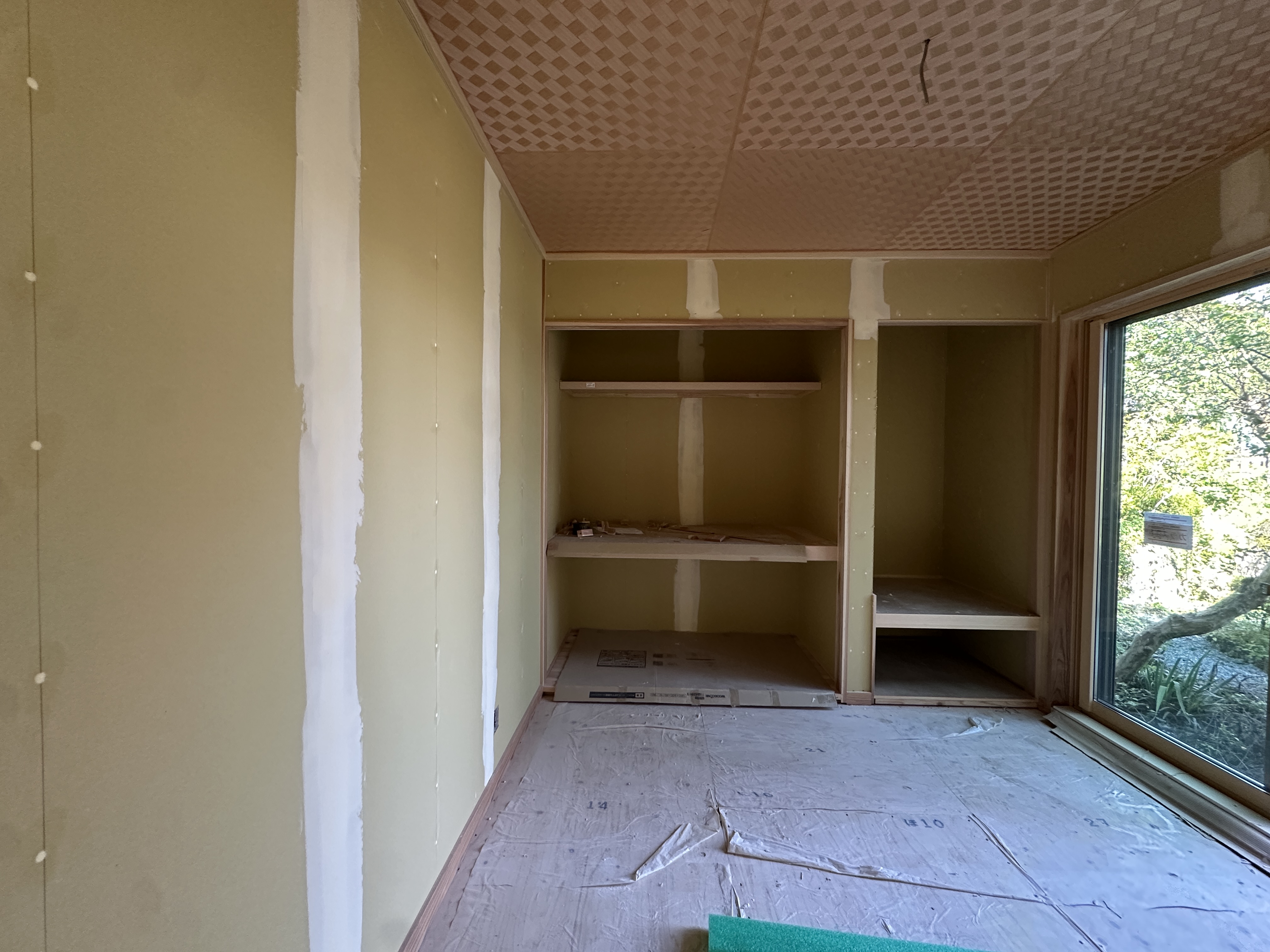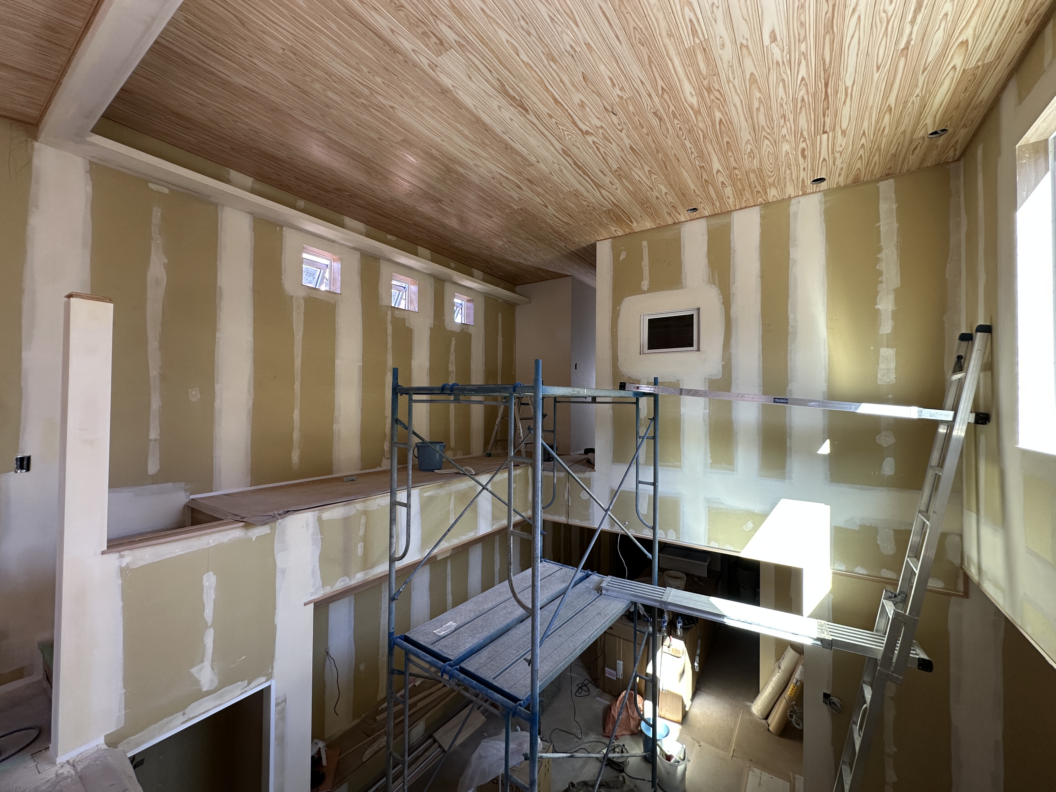 こんにちは。現場より進捗のお知らせです📸 Tファミリー邸では、内装のパテ処理が着々と...