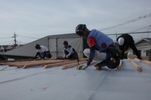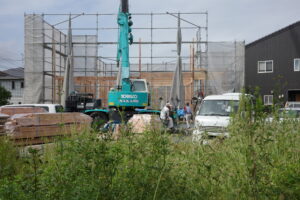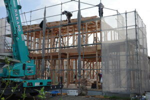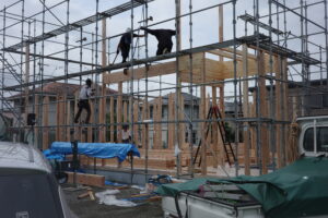 大工さんたちの息の合った手仕事によって、少しずつ家のかたちが姿を現していきました。
