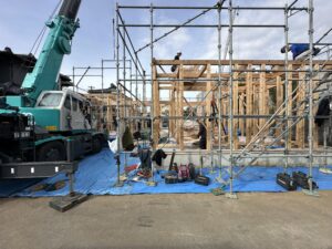 朝から大工さんたちの手際のいい作業が続き、柱が立ち、梁がかかり、家のかたちがどんどん見えてくる一日🏠