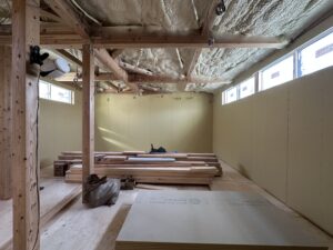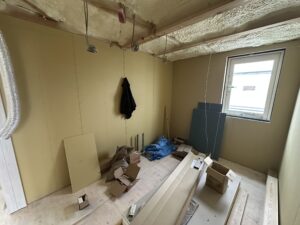 水前寺モデルでは、壁ボード貼りの工程が完了しました🏠