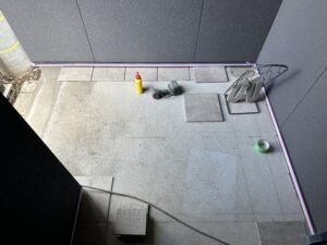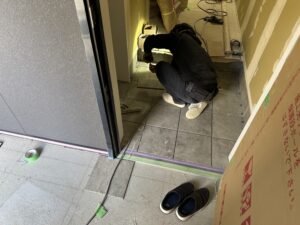 水前寺モデルでは現在、タイル施工が進んでいます!