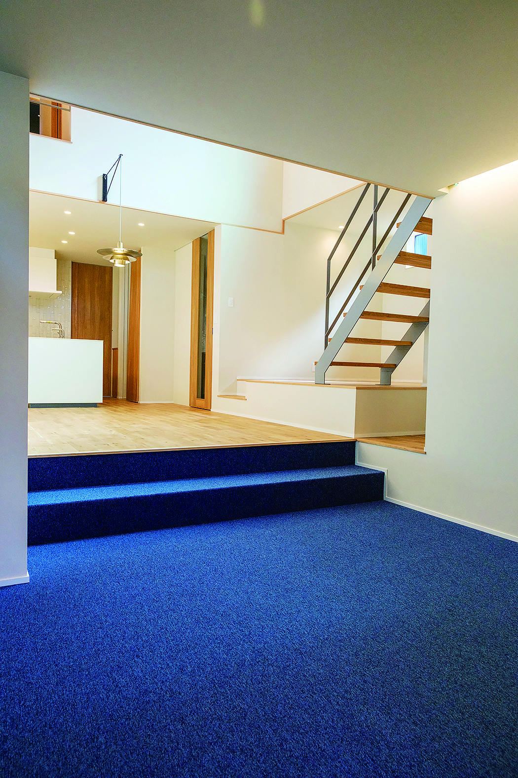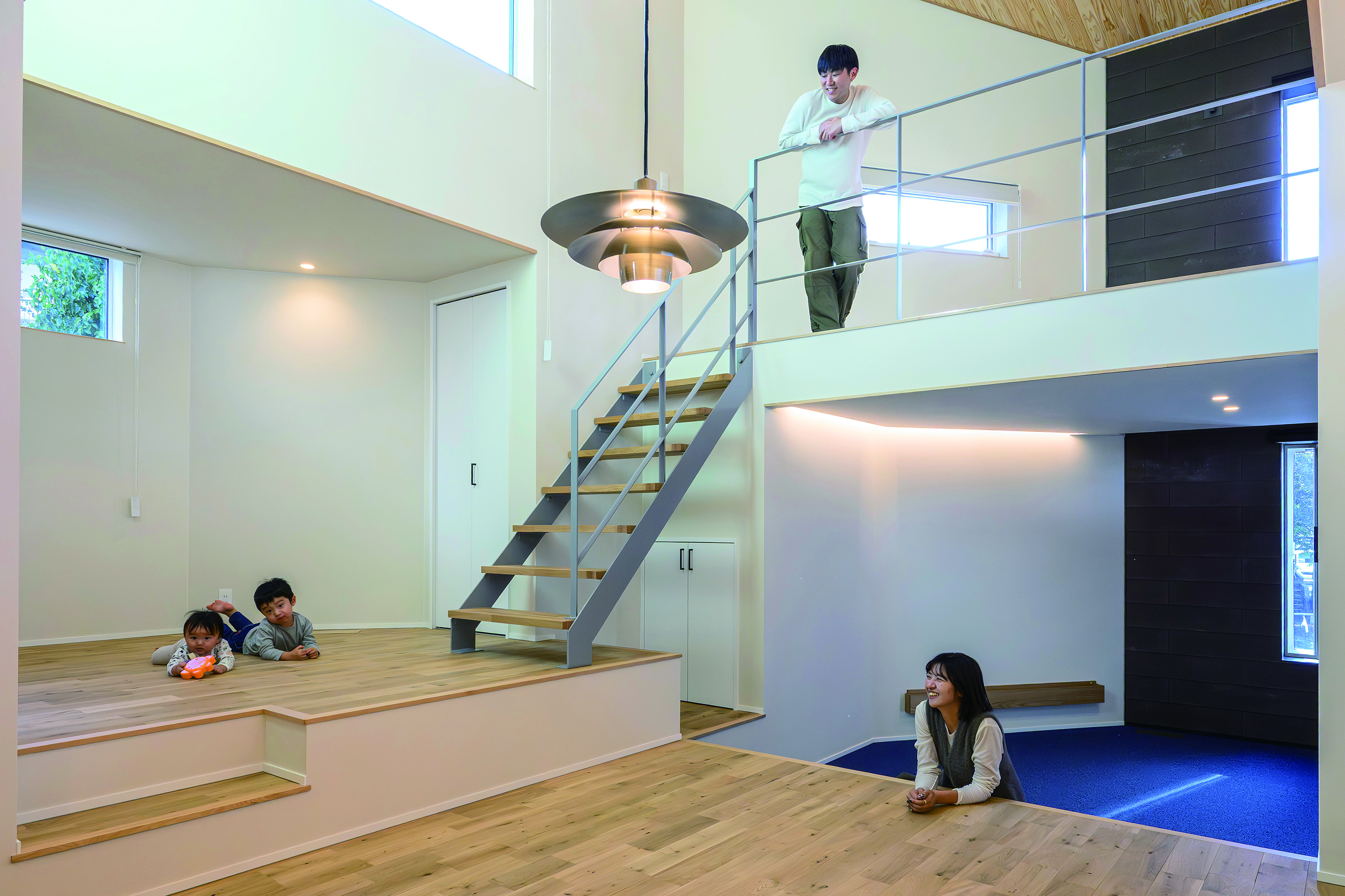 LDKはスキップフロアで上下の視線がつながり、家族の気配がどこにいても自然と伝わる設計になっています。
