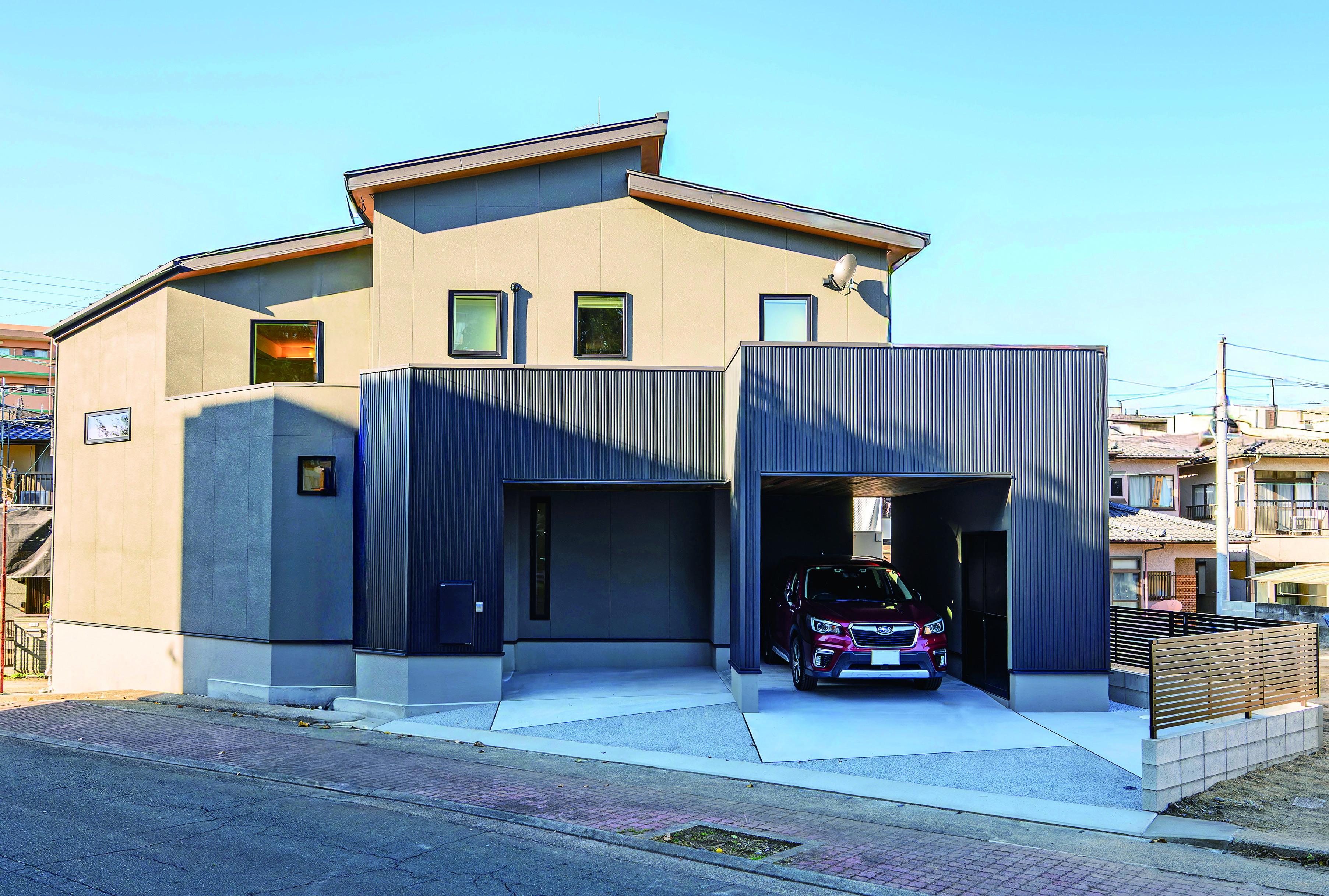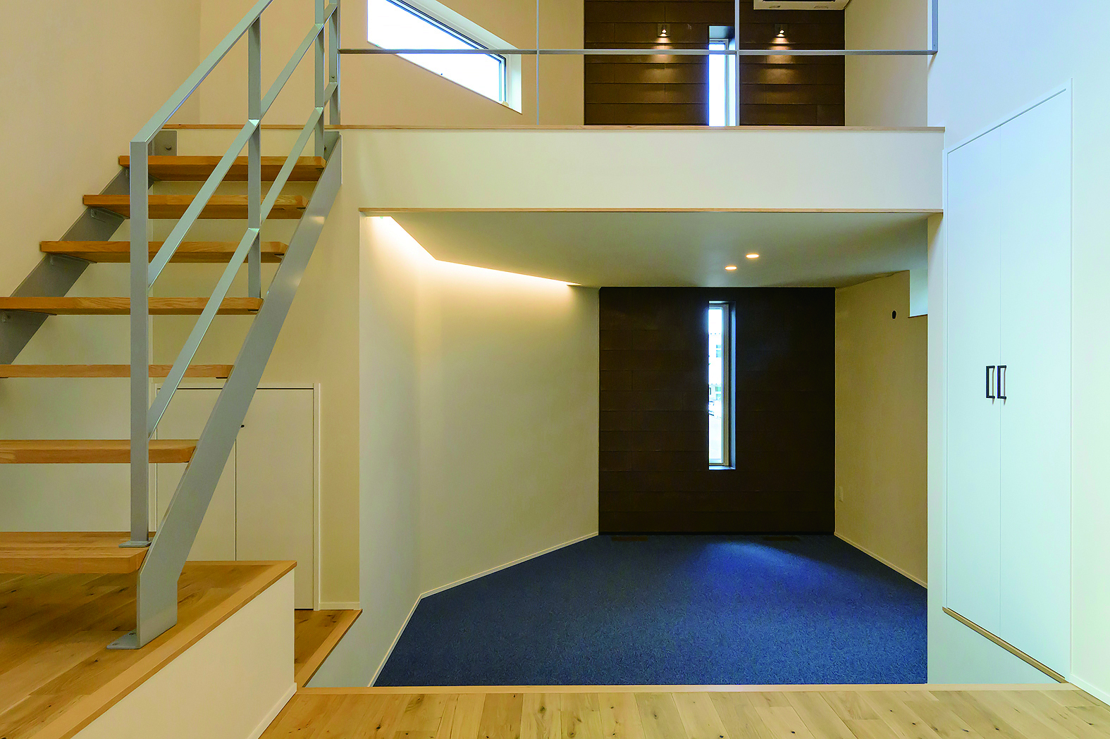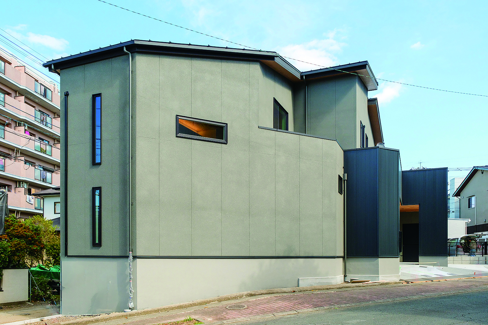 土地は高低差がある変形地。規格住宅では実現ができない、自由度の高い設計で、土地の個性を活かしきった一棟。